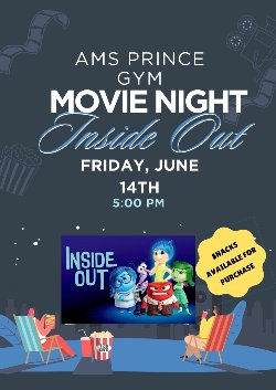 Join us Friday, June 14th for our family movie night. We will be watching inside out! Snacks will be available for purchase as well.